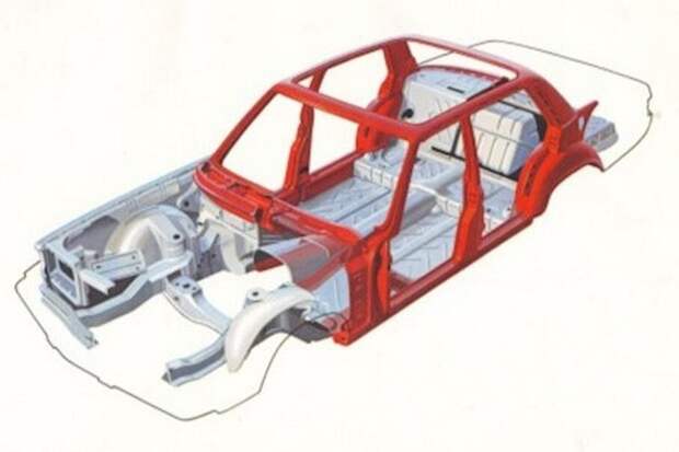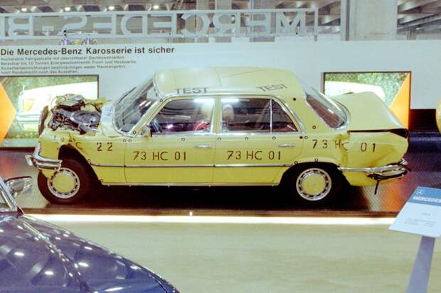 Концепции «зон деформации» мерседесовцы придерживались ещё с сороковых годов. Идея инженера Белы Барени подразумевала создание очень прочной центральной части кузова, в которой размещаются пассажиры, и сминаемых зон спереди и сзади, которые должны поглощать энергию удара. Например, по этой схеме был сконструирован кузов вышедшего в 1953 году семейства седанов «Понтон».