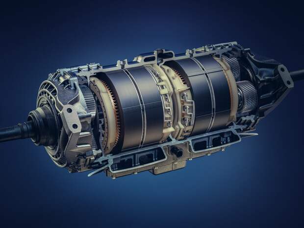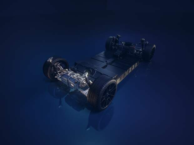 Задние электродвигатели могут передавать крутящий момент на колёса в противоположных направлениях, чтобы обеспечить устойчивость при повороте или движении по прямой, а в крутых поворотах система может применять рекуперативное торможение на внутреннем колесе, одновременно подавая больше тяги на внешнее, повышая манёвренность.