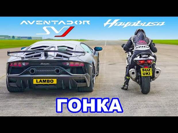 #carwow #lamborghini #suzuki Понравилось видео? Подписывайтесь на @carwow Русская версия и включайте уведомления, чтобы не пропускать новые выпуски! А вот это точно будет прикольно! Мэт за рулём Lamborghini Aventador SVJ, и сегодня он потягается с эпичным мотоциклом Suzuki Hayabusa. Давайте сперва о характеристиках Aventador: он оснащён роскошным атмосферным 6,5-литровым V12 мощностью 770 л. с. и 720 Нм момента. Снаряжённая масса SVJ 1525 кг, а стоит он аж целых 350 тысяч фунтов!!! Suzuki Hayabusa, что неудивительно, куда легче своего четырёхколёсного противника - и стоит куда дешевле! Масса мотоцикла чуть больше 260 кг, а стоит такой примерно 17 тысяч фунтов. Что до мощности, Suzuki Hayabusa выдаёт 195 л.с. Так что, сможет ли суперкар за 350 тысяч фунтов побить супербайк за 17 тысяч в заезде на 1/4 мили с места?? Сами понимаете, есть лишь один способ выяснить - ПОГНАЛИ! Ещё один крутейший заезд: Загляните на Bike World - @BikeworldCoUkTV Марк Макан - @MarkMcCann64 Carwow Shorts - https://www.youtube.com/channel/UChqjw1OxDLUVvoP3r7BXteg TikTok - https://vm.tiktok.com/Vr2AS9/ Instagram - http://www.instagram.com/carwow Instagram Мэта - http://www.instagram.com/matwatsoncars Facebook - http://www.facebook.com/carwowuk/ Twitter - http://www.twitter.com/carwowuk e-mail - reviewmycar@carwow.co.uk Канал Мэта - https://www.youtube.com/channel/UCulu1KUYJ_2OBDouc_d-cUA Оригинальное видео от 04.06.2022 Ссылка: Мерч: https://teespring.com/en-GB/stores/carwow-index