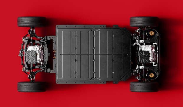 Трансмиссия переднего двигателя дополнена муфтой, которая размыкается при движении по трассе. И никакого управления вектором тяги: задний мотор приводит колеса через обычный дифференциал.