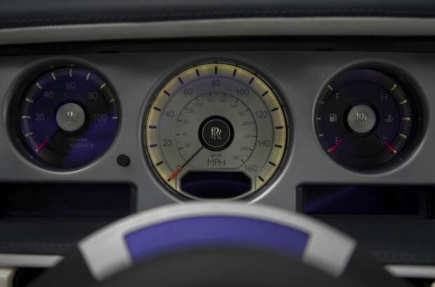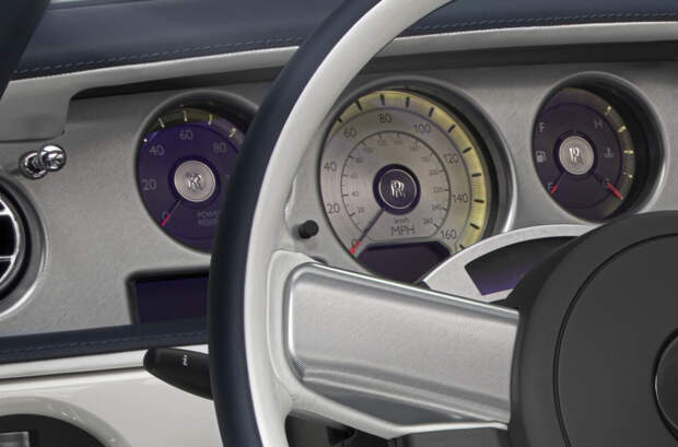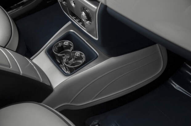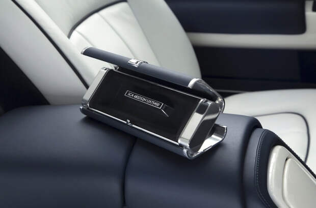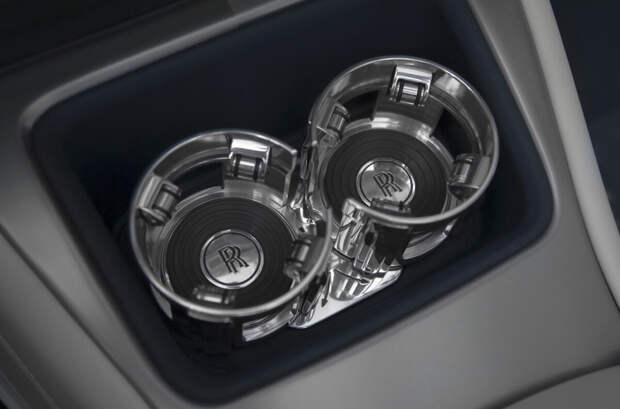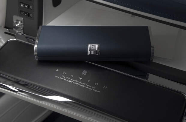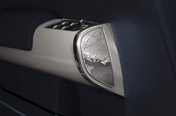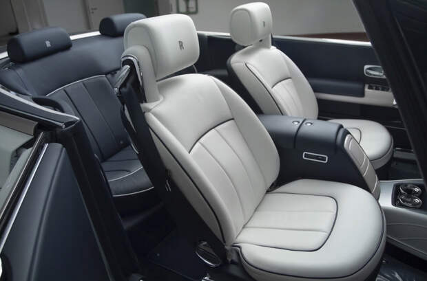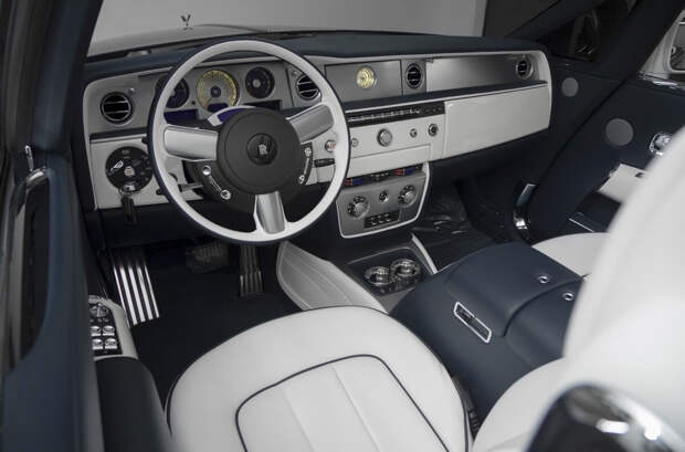 На подлокотниках автомобиля специалисты выгравировали очертания знаменитой итальянской виллы Д’Эсте, а также контур Женевского озера. Именно в этих локациях британская компания представляла первые прототипы двухдверных Phantom. Передние сиденья кабриолета выполнены из белой кожи, в то время как задние отделали темной.