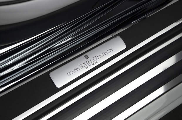 Rolls-Royce Phantom Drophead Coupe Zenith отличается двухцветным кузовом, который сочетает в себе основной белый цвет и темно-синий оттенок Midnight Blue, отсылающий к палитре, применяемой в «Роллс-Ройсах» 1930-х годов. Кроме того, автомобиль полностью оклеен в бронированную пленку и «обут» в фирменные черные колесные диски и покрышки с белой полосой, которые специально привезли из Англии.
