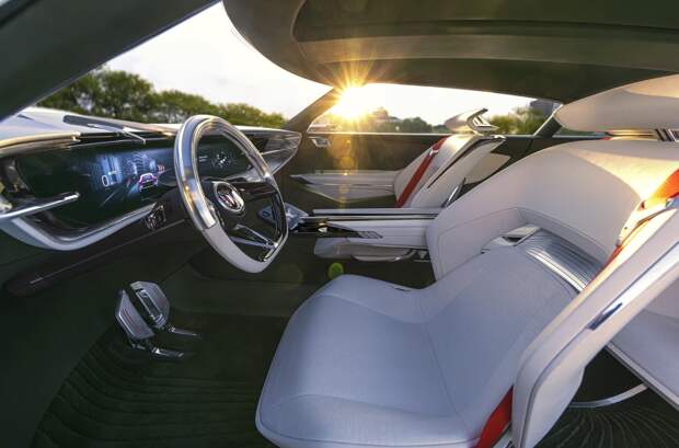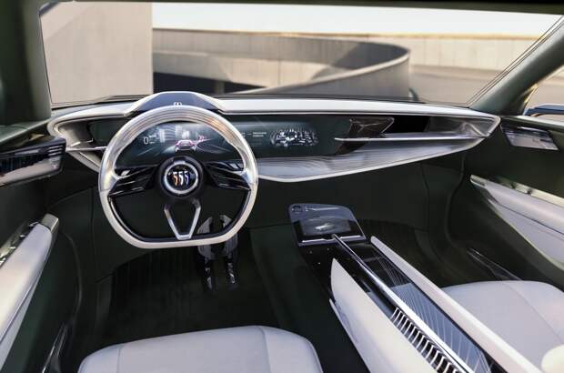 Как считают в Buick, внутреннее убранство «Дикой кошки» определяю простые, изящные формы, которые «передают баланс, гармонию и ощущение тепла». В поле зрения водителя — четыре дисплея. К широкоформатной «приборке» на передней панели прилагаются встроенные в двери экраны камер бокового обзора и тач-панель на консольном центральном подлокотнике. Другая немаловажная деталь — выбор цветов.