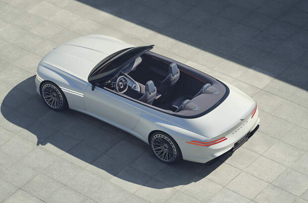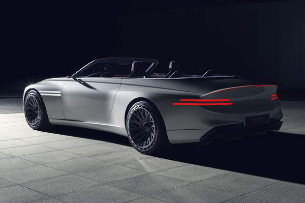 Главная особенность кабриолета – чистые и гладкие линии, фирменные сдвоенные полоски задних фонарей, гармонирующих с такими же полосами по бокам. У концепта жесткий складной верх с двумя прозрачными секциями, расположенными над водителем и пассажиром. За внешний вид автомобиля отвечал азербайджанский дизайнер Самир Садыхов, работающий в немецкой студии марки Genesis.