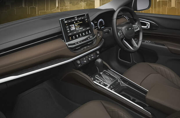 Салон в точности повторяет Commander (за исключением расположения руля): те же экран мультимедийной системы диагональю 10,1 дюйма, виртуальная панель приборов на 10,25 дюйма, беспроводная зарядка для смартфона, шесть подушек безопасности, двухзонный климат-контроль, камеры кругового обзора и система выбора режимов движения.