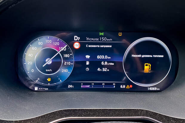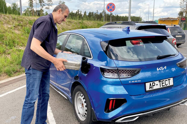 Утром тщательно выставляю 2,2 бара в холодных шинах при +22°C, доезжаю до выезда из Москвы по M11 и заправляюсь под пробку в семи километрах от кольцевой дороги. Бортовой компьютер обещает пробег 751 км, а до питерской окружной всего-то 665 км. Однако электроника Kia не рассчитывала, что я поеду со скоростью 150 км/ч — это разрешенные 130 км/ч плюс пресловутая официальная «добавка» в 20 км/ч. И на траверсе Валдая Ceed уже начал показывать недоезд по километражу.