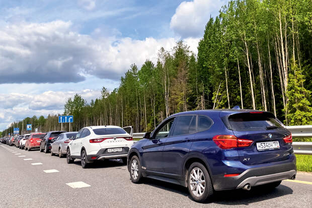 Кстати, тема заправок на трассе M11 сверхактуальная. Если первый, 135-километровый участок от Москвы до съезда на M10 перед Тверью можно пройти без проблем, то второй, без малого 500-километровый, ошибок не прощает. Главная ошибка — выезжать на него, не залив полный бак. Да, АЗС на маршруте есть, но они по-прежнему не справляются с потоком машин. Посередине на большом заправочном комплексе Лукойл вижу, что к каждой из колонок стоит по пять-шесть автомобилей. До Питера 260 км, Ceed говорит, что бензина у меня на 230 км, но я газ не отпускаю. Да и навигатор обещает еще две заправки впереди. Ага, вот первая — в двух сотнях километров от Питера. Контейнерная, очередь на нее выстроилась аж за 100 метров до съезда. А через 100 км еще одна контейнерная АЗС, и очередь туда уже метров 200!