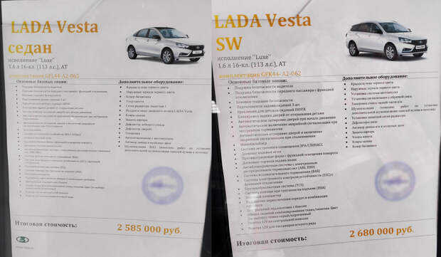 У других столичных дилеров цены примерно такие же. А некоторые продавцы на голубом глазу сообщают, что это и есть рекомендованные цены! Хотя понять приблизительный масштаб наценки нетрудно: дореформенный универсал Лада Веста SW даже в топ-версии Exclusive с вариатором по официальному прайс-листу стоит 1 млн 569 тысяч рублей.