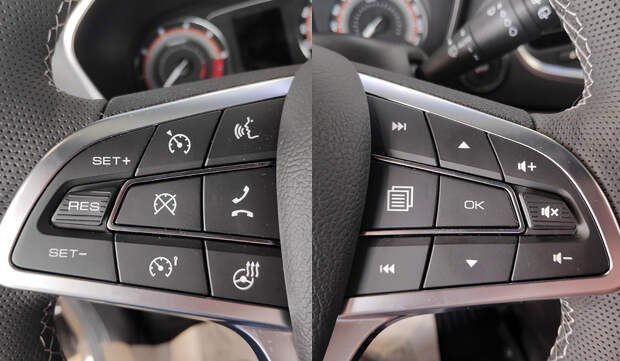 Новый руль — с измененной логикой расположения кнопок. Например, клавиши управления телефоном и подогревом руля переехали с правой спицы на левую. Справа же теперь клавиши управления меню бортового компьютера. Для управления громкостью и регулировки скорости у круиз-контроля теперь установлены качающиеся клавиши, а сверху и снизу от них — лишь заглушки с пиктограммами.