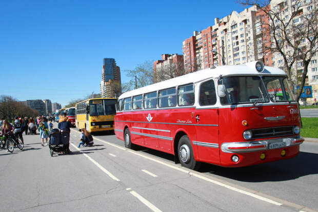 Впрочем, большинство зрителей, особенно юных, с интересом осматривали «старичков». Малышей особо привлекала ярко-красная «сигара», Ikarus 55 Lux с длинной «кормой». Это, кстати, один из первых восстановленных образцов Пассажиравтотранса и Ретробаса, жаль, не на родных агрегатах.
