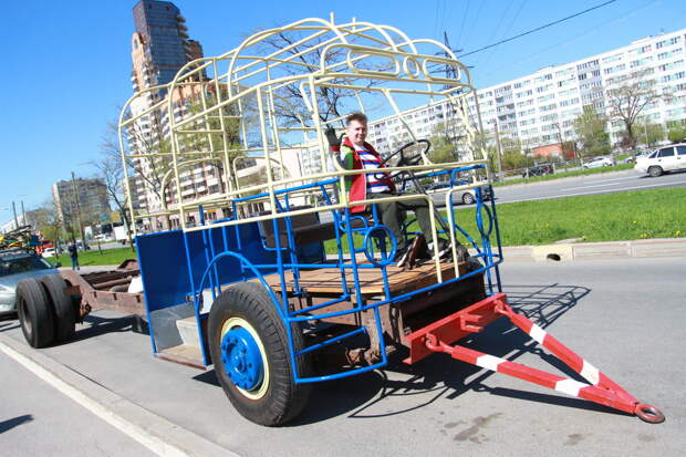 Самый любимый детский тренажер Электротранса получил забавную клетку и прибыл на жесткой сцепке. За рулем был наш друг и читатель — водитель троллейбуса Роман Висельский