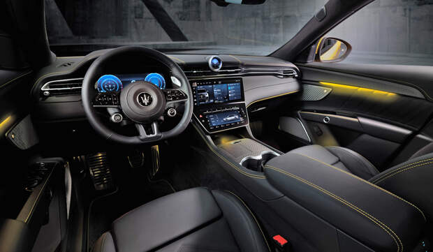 Интерьер — с четырьмя экранами на передней панели. Пассивный приборный экран диагональю 12,3 дюйма имеет три режима отображения (четыре у версии Trofeo). На центральной консоли — два сенсорных дисплея. Верхний на 12,3 дюйма — это медиасистема Maserati Intelligent Assistant (MIA) с оболочкой Android OS. А нижний экран на 8,8 дюйма отвечает за климат-контроль и другие «комфортные» настройки.