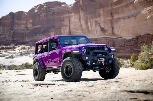 Фактически это переделанный под рок-краулер Wrangler Rubicon 392, на который поставили пневмоподвеску и здоровенные шины внешним диаметром 40 дюймов. Максимальный дорожный просвет — 420 миллилитра. У машины нет ни дверей, ни задней стенки кабины, а кузовные панели изготовлены из углепластика.