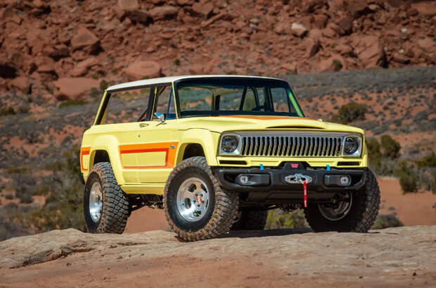 Наконец, Cherokee 4xe Concept — это заводской рестомод внедорожника 1978 года. Под капотом — гибридная установка от Wrangler Rubicon 4xe мощностью 381 лошадиную силу и 637 Нм крутящего момента. Автомобиль оснащен светодиодной оптикой и современными бамперами. Завершают облик колеса, обутые в шины внешним диаметром 37 дюймов.