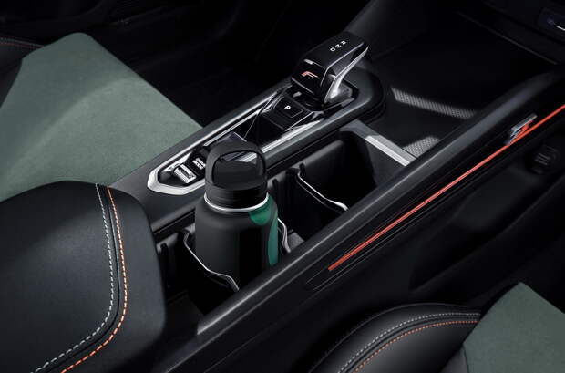 Селектор трансмиссии нефиксируемый, на дверях появились зелёные декоративные вставки, на панели — мягкие вкрапления.