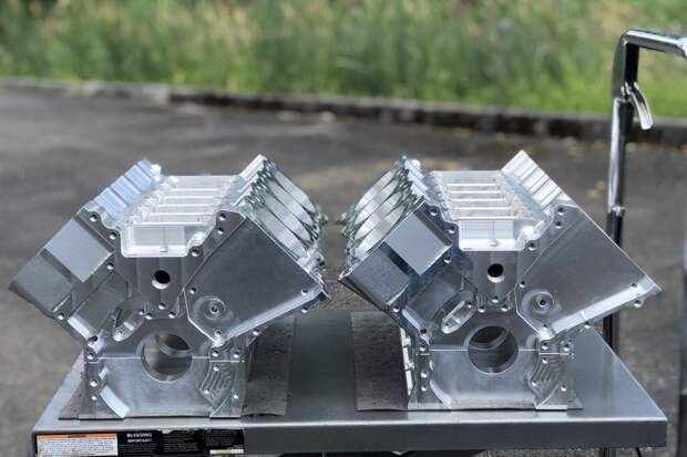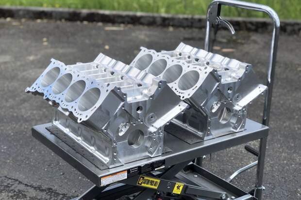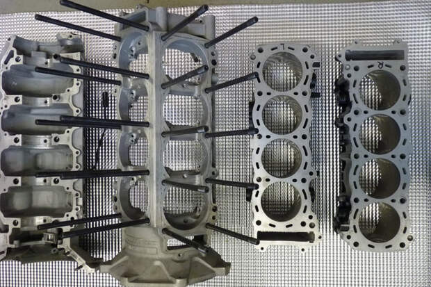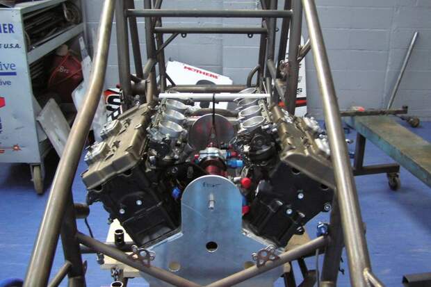 А в середине нулевых Пембл на той же основе разработал двигатель V16. По сути, это были два мотора V8, установленные друг за другом и срощенные единым картером и коленвалом. У этого агрегата было четыре блока цилиндров и четыре головки, по-прежнему заимствованные у четырёхцилиндрового мотоцикла.