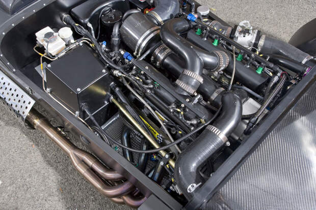 Мотоциклетный двигатель — заманчивый вариант для постройки спортивного или гоночного автомобиля. Они сочетают компактные размеры и малый вес с высокой литровой мощностью: 140 сил с литра без использования наддува — в порядке вещей. Да вот беда: рабочий объём даже самых крупных мотомоторов не превышает полутора литров — а значит, на мощность более двухсот с копейками сил рассчитывать не приходится.