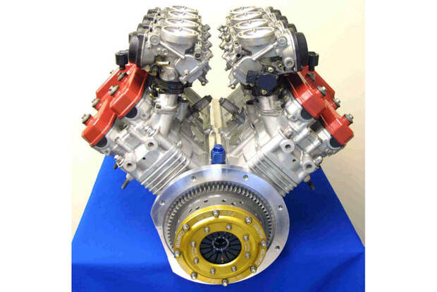 Этого более чем достаточно для сверхлёгких машин — например, трековых спорткаров Caterham и Westfield или маленьких кроссовых багги. Но для более серьёзной техники этого мало. А что если объединить пару мотоциклетных моторов воедино?Мотоциклетный двигатель — заманчивый вариант для постройки спортивного или гоночного автомобиля. Они сочетают компактные размеры и малый вес с высокой литровой мощностью: 140 сил с литра без использования наддува — в порядке вещей. Да вот беда: рабочий объём даже самых крупных мотомоторов не превышает полутора литров — а значит, на мощность более двухсот с копейками сил рассчитывать не приходится. Этого более чем достаточно для сверхлёгких машин — например, трековых спорткаров Caterham и Westfield или маленьких кроссовых багги. Но для более серьёзной техники этого мало. А что если объединить пару мотоциклетных моторов воедино?