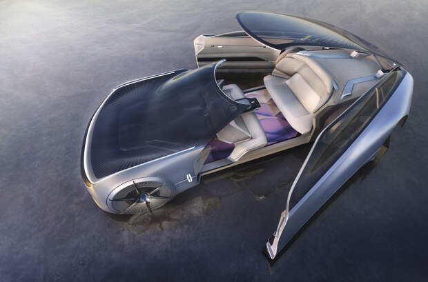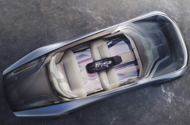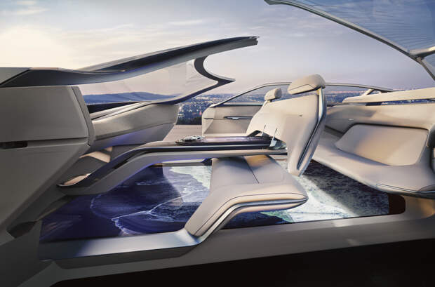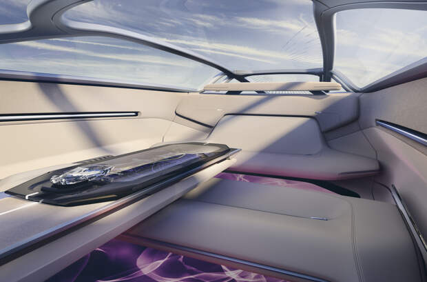 Руля и педалей у беспилотника нет, а единственный орган управления — хрустальная фигурка автомобиля, вдохновленная драгоценными камнями. Для удобства общения с пассажирами на втором ряду передние сиденья можно превратить в скамью, убрав спинки.