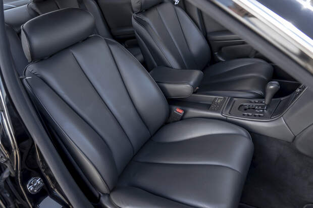 Японские представления о прекрасном в начале эры электронных гаджетов подчеркивали круглые стрелочные часы по центру торпедо с белым циферблатом и золотой (на некоторый версиях) окантовкой. И если уж мы заговорили о драгоценностях… Самым невероятным оснащением Infiniti Q45, конечно же, был ключ зажигания из… настоящего 18-каратного золота! Опция за каких-то $5000 — примерно восьмую часть стоимости всего автомобиля.