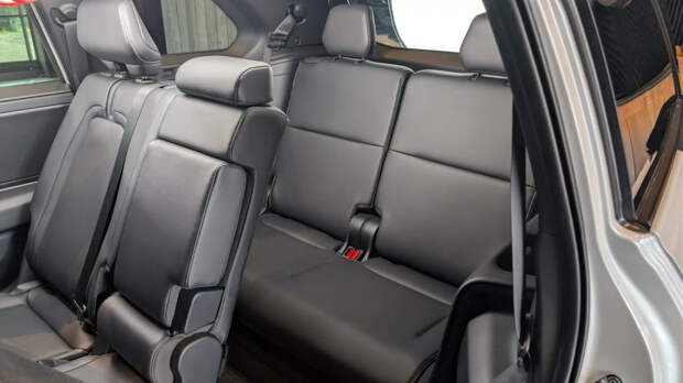 Более длинная база обеспечивает просторный салон и удобный доступ к третьему ряду сидений.В салоне установлены 14-дюймовая медиасистема и 12.3-дюймовая цифровая приборная панель. Для важных функций, таких как климат-контроль, сохранены физические кнопки. Третий ряд сидений, по заявлению Toyota, рассчитан на взрослых.