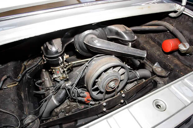Прямо за ними под капотом и стоял двухлитровый шестицилиндровый оппозит Porsche с воздушных охлаждением. Созданный для компактной, профилированной кормы 911, в багажнике седана он смотрелся маленьким и одиноким — по обеим сторонам оставалось огромное количество свободного места.