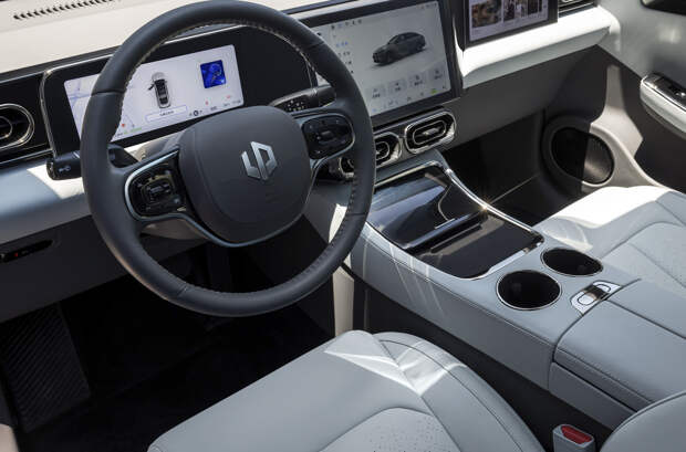 В список оснащения Leapmotor C01 входит массивный экран мультимедийной системы с тачскрином, отдельный дисплей для переднего пассажира, цифровая приборная панель со встроенной навигацией, а также отделка салона кожей и множество водительских ассистентов.