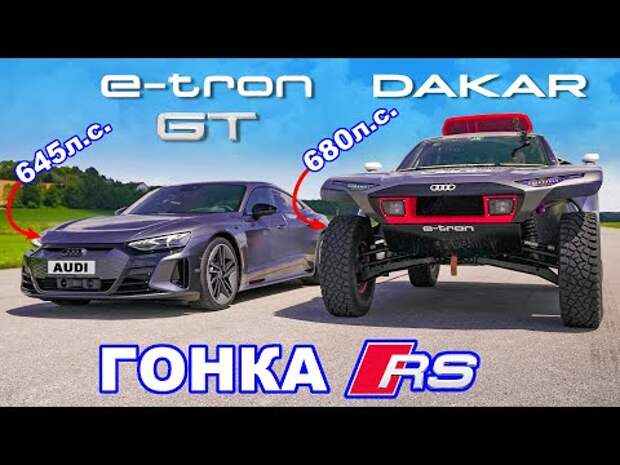 #carwow #audi Понравилось видео? Подписывайтесь на @carwow Русская версия и включайте уведомления, чтобы не пропускать новые выпуски! Самое время для совершенно безумного заезда двух Audi! Мэт за рулём Audi RS e-tron GT, и он собирается погоняться с Audi RS Q e-tron, авто ралли "Дакар" (да, мы и сами не верим напечатанному. ..)! Давайте посмотрим на характеристики машин. Начнём с RS e-tron GT: он оснащён двумя электромоторами совокупной мощностью 646 л.с. и 830 Нм момента. У авто батареи 93 кВт-часа, а снаряжённая масса 2276 кг. Что до цены, новое такое авто обойдётся примерно в 115 тысяч фунтов. Теперь о раллийном авто! Его кузов сделан из карбона, а два мотора позаимствованы у болида "Формулы E"! То есть, машина довольно мощная, так? Ну, у ралли-каров есть ограничение, максимум они выдают 380 л.с. (по крайней мере, в обычных условиях)! Также у авто есть дополнительный двигатель внутреннего сгорания, возвращающий часть заряда в батареи; поэтому снаряжённая масса машины немаленькая, почти как у e-tron GT - в районе 2200 кг. Впрочем, стоит эта диковинка чуть дороже e-tron GT - примерно 2 миллиона фунтов!! Так как вы думаете, есть ли у раллийного авто шанс на победу? Есть лишь один способ выяснить - ПОГНАЛИ! Ещё один крутой заезд: Carwow Shorts - https://www.youtube.com/channel/UChqjw1OxDLUVvoP3r7BXteg TikTok - https://vm.tiktok.com/Vr2AS9/ Instagram - http://www.instagram.com/carwow Instagram Мэта - http://www.instagram.com/matwatsoncars Facebook - http://www.facebook.com/carwowuk/ Twitter - http://www.twitter. com/carwowuk e-mail - reviewmycar@carwow.co.uk Канал Мэта - https://www.youtube.com/channel/UCulu1KUYJ_2OBDouc_d-cUA Оригинальное видео от 30.07.2022 Ссылка: Мерч: https://teespring.com/en-GB/stores/carwow-index