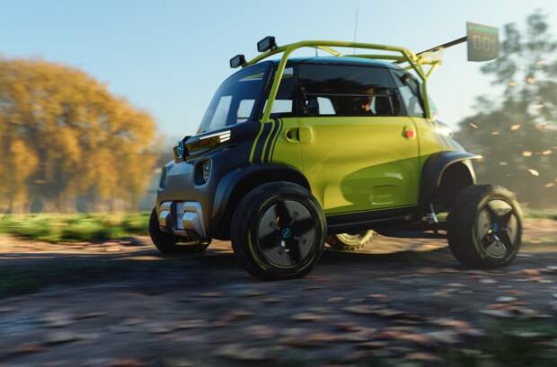 По словам автора, оригинальный Rocks-e позволяет быть мобильным и получать удовольствие от вождения, поэтому в концепте эти качества просто доведены до крайности.Но вообще Rocks-e — это клон Citroen Ami. Мощность его электромотора составляет 6 киловатт (8 л.с.), максимальная скорость — 45 километров в час. Батарея емкостью 5,5 киловатт-часа обеспечивает машинке запас хода до 75 км по циклу WLTP. Поскольку и Ami, и Rocks-e классифицируются как легкие пассажирские квадроциклы (L6e-BP), то для управления ими не требуется водительских прав. Французы могут сесть за руль с 14 лет, жители других стран Европы — с 16.