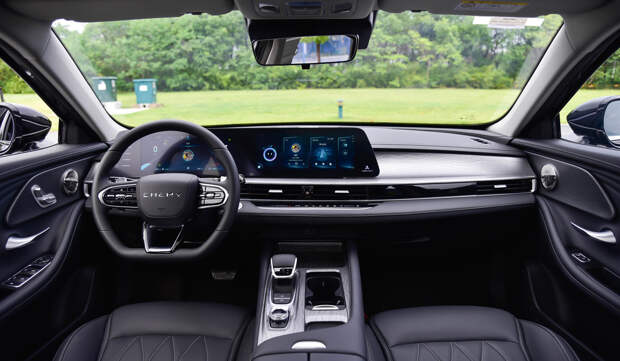 Интерьер оформлен по современным канонам с двумя экранами на передней панели (по 12,3 дюйма каждый). На выбор предложены три варианта отделки: помимо базового черного цвета есть комбинированные схемы с синим или зеленым оттенком. Уже «в базе» установлены десять подушек безопасности, среди опций — проекционный дисплей с дополненной реальностью, панорамная крыша, электропривод передних сидений с пультами управления на дверях, как у Мерседесов.