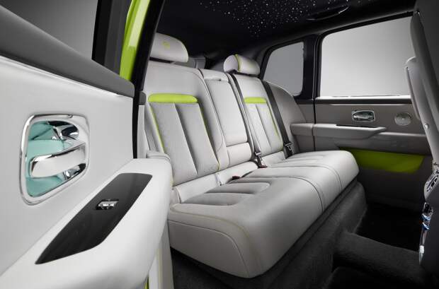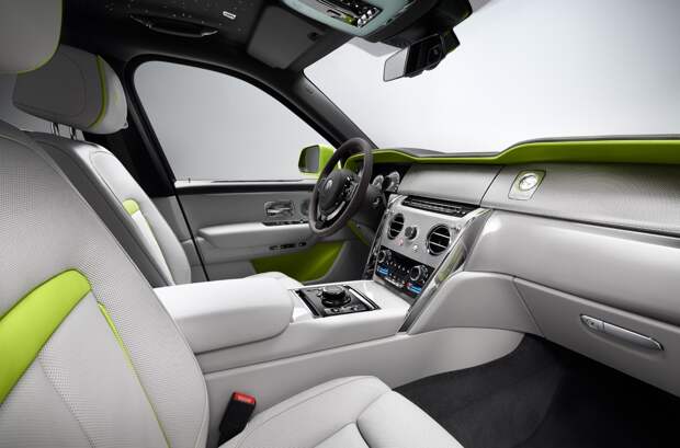 Cullinan в версии Re-Belle предлагается в лаймовом Lime Green, темно-сером Gunmetal, ягодном Wildberry или белом Arctic White. Салон оформлен в стиле современного колор блокинга (яркие контрастные оттенки в неожиданных сочетаниях) с основными цветами Peony Pink или Lime Green, контрастирующими с Arctic White или серым Cashmere Grey. В отделке передней панели применена «ткань» ручной работы, сплетенная из стальных нитей диаметром всего 0,45 миллиметра и по-особому отражающая свет во время движения автомобиля.
