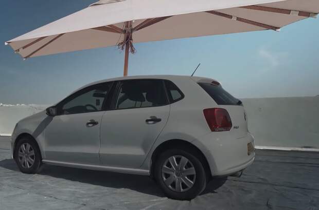 Для демонстрации технологии стартап объединился с Volkswagen и обклеил пленкой обычный Polo. Его и машину без специального покрытия вывезли в пустыню.
