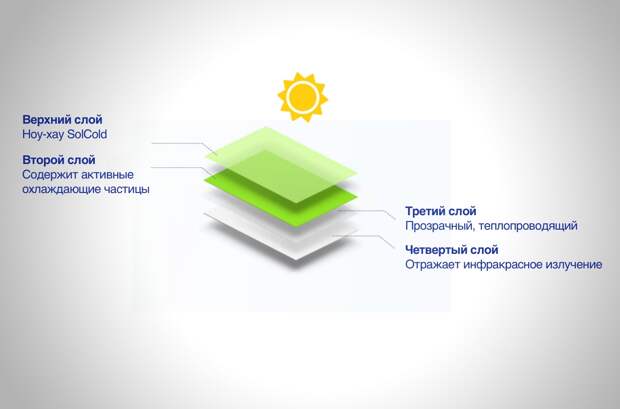 Фирма SolCold разработала уникальное пленочное покрытие, которое может активно охлаждать салон автомобиля. Пленка состоит из четырех слоёв, и благодаря особому их сочетанию на солнце отдает тепло с большей интенсивностью, чем принимает. Этим и достигается охлаждающий эффект, причем разница температур в салоне автомобиля с плёнкой и без неё может доходить до 70 процентов.