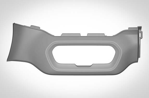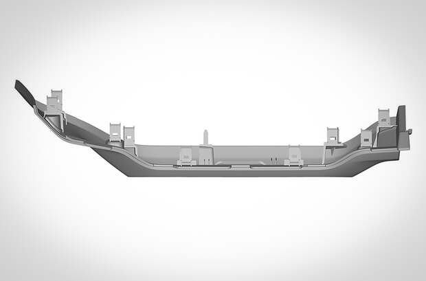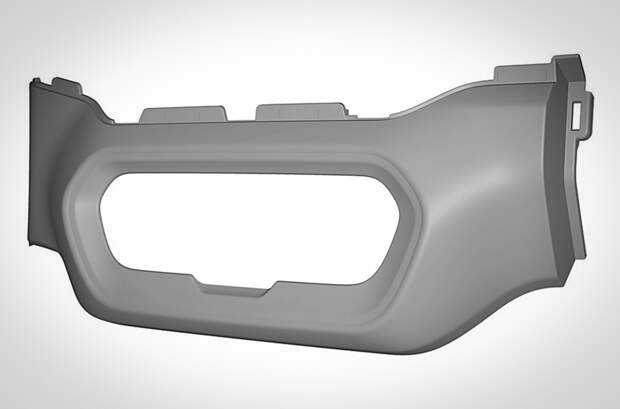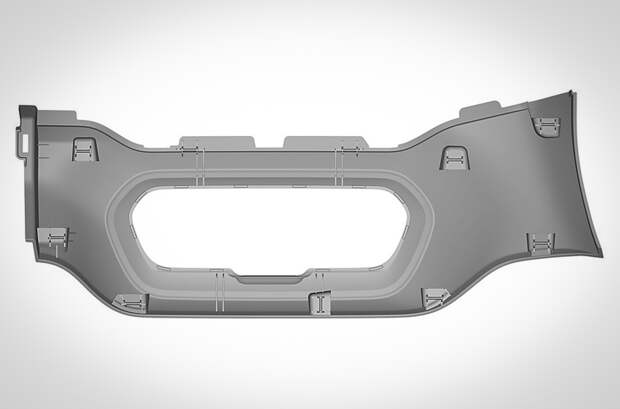 Любопытно, что деталь изображена в двух вариантах. На одном из них отсутствует круглое отверстие слева от рамки «приборки», вероятно, предназначенное для дефлектора системы вентиляции.