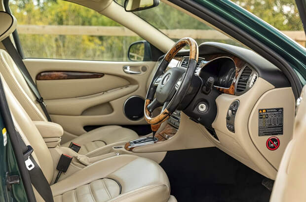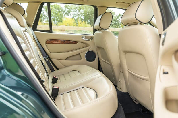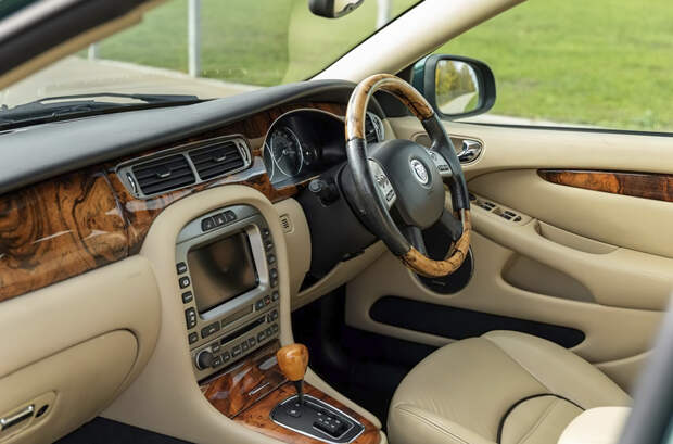 X-Type Estate выкрашен в темно-зеленый оттенок Emerald Fire, а интерьер обшит натуральной бежевой кожей и отделан деревом. В оснащении множество удобств под стать владелице: крыша с люком, климат-контроль, электропривод окон, встроенный навигатор и CD-проигрыватель.