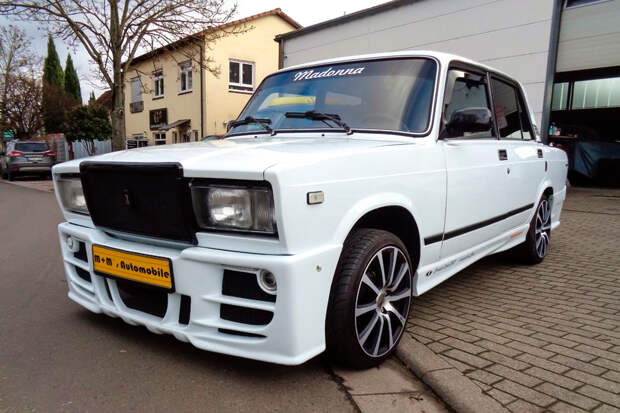 Нет, это объявление не из Асбеста или Норильска, а из небольшого городка Нойхофен на юге Франкфурта-на-Майне. И в данный момент любой здешний житель может побаловать себя спортивным болидом на базе ВАЗ-2107 1990 года выпуска. Судя по всему, у этого тюнингового проекта даже есть имя собственное: слово Madonna нанесено прямо на лобовое стекло.