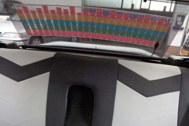 Ко всему прочему в заднее стекло «семерки» встроен интерактивный эквалайзер, чтобы все видели, какие нечеловеческие пытки испытывают барабанные перепонки пассажиров. По заверениям продавца в Ладу установлена музыка Pioneer за 2800 евро — треть цены автомобиля.