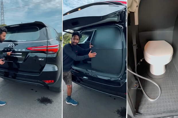 Индийский автомобильный журналист Сарат Саджи показал на видео оригинально модернизированный рамный внедорожник Toyota Fortuner. В багажнике автомобиля оборудовали отдельную туалетную кабинку, да так, что снаружи переделка совсем не заметна. Доступ в уборную такой же, как на третий ряд сидений: кресло второго ряда откидывается, освобождая проход, однако попасть к унитазу, не открывая боковую дверь, окажется затруднительно.
