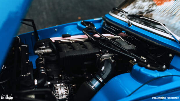 Работы по кузову повлияли на каждый элемент автомобиля. Из-за изменившейся геометрии подвески не получилось установить штатный рулевой редуктор. Илья попробовал просто перейти на реечный механизм, но в итоге пришлось установить всю подвеску от более современной Е36. Заводской двигатель Е12 тоже был обречен: его место занял легендарный М52В28. Но просто так поставить что-то — это не метод Ильи, поэтому добавили ЭБУ ms3, сделали шейвинг подкапотного пространства, установили дроссель от Subaru, чтобы сделать регулятор холостого хода поменьше. Уверен, это далеко не весь список доработок.