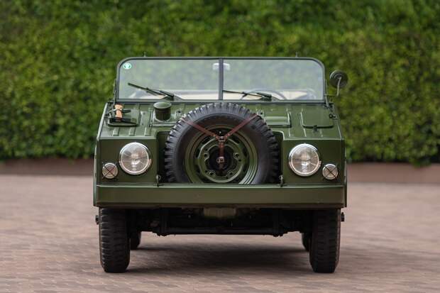 Автомобиль окрашен в уставной для немецкой армии 50-х годов тёмно-зелёный цвет кузова, имеет обитые зелёным материалом сиденья, съёмный брезентовый верх и мягкие двери из того же материала.Оснащён внедорожник 1,5-литровым 50-сильным двигателем с 5-ступенчатой механической коробкой передач и полным приводом. В комплекте с редким Porsche 597 Jagdwagen продавец готов отдать заводской набор инструментов и комплект документации на автомобиль. Сумму, за которую владелец машины 1955 года готов с ней расстаться, не называют.