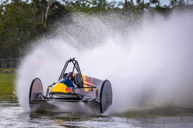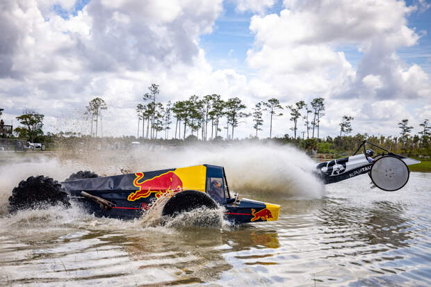 Перед началом первого в истории Гран-при Майами Формулы-1 компания Red Bull устроила для двух гонщиков — действующего чемпиона мира голландца Макса Ферстаппена из Oracle Red Bull Racing и японского пилота Юки Цуноды из Scuderia AlphaTauri — необычное развлечение. Спортсменов посадили за руль «болотных багги» и отправили покорять дистанцию на стоячей воде, чего ни одному из участников чемпионата мира не доводилось делать ранее.