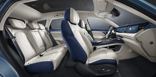 В салоне использованы дорогие отделочные материалы, штатно установлена стеклянная крыша с электрохромным затемнением вместо шторки. Из оснащения есть камеры кругового обзора, встроенный видеорегистратор, адаптивный круиз-контроль и многое другое.