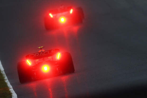 Звучит странно, но нынешние дождевые шины выкачивают с трассы слишком много воды. Они очень широкие, с эффективным протектором, и хороши для того, чтобы избегать аквапланирования, но обратная сторона этой их эффективности — море брызг позади машины. А когда таких машин несколько, едущие в середине пелотона пилоты оказываются просто в слое искусственного тумана такой плотности, что видят только горящие фонари едущей в паре метров впереди машины.