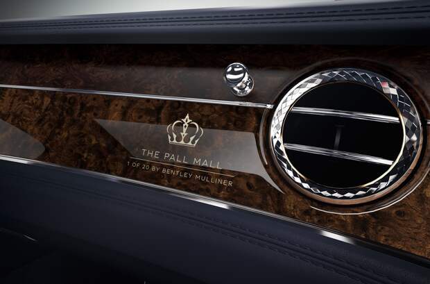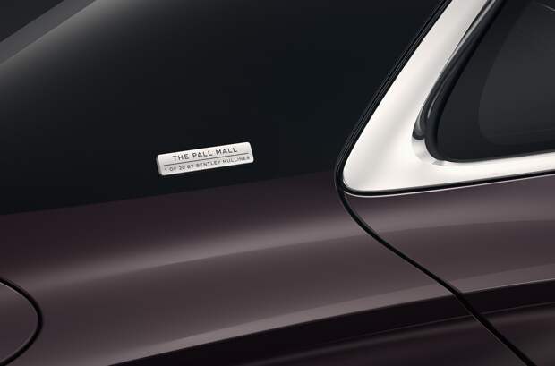Седан Flying Spur The Pall Mall окрашен в исторический колер Claret. Этот оттенок был создан в начале 2000-х специально для двух Bentley State Limousine, преподнесённых Елизавете II к 50-летнему юбилею восхождения на трон.