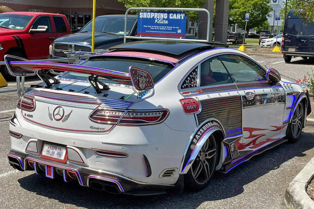 Пользователь портала Reddit опубликовал фотографию, пожалуй, самого неудачного и даже уродливого тюнинга двухдверки Mercedes-Benz E-Class. Как справедливо заметил один из комментаторов, после доработок автомобиль стал больше похож на индийский автобус или грузовик, доработками которого занимался фанат серии фильмов «Форсаж», но никак не на люксовое купе.