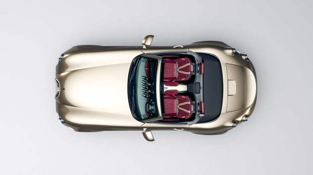 Золотистый родстер Roaring Twenties отсылает, как ясно из названия, к эпохе бурных 1920-х и вымышленному персонажу Джею Гэтсби. Кузов цвета шампанского сочетается с тёмно-бордовым интерьером, отделанном кожей и алькантарой.
