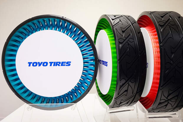 Японская компания Toyo Tires рассказала о «революционном прогрессе» в технологии безвоздушных шин. Среди достоинств таких покрышек — стойкость к проколам протектора, отсутствие необходимости следить за давлением и увеличенный срок службы по сравнению с традиционными. По словам разработчиков, шины стали прочнее в 10 раз, в прочность резины на разрыв увеличилась примерно на 40 процентов и теперь находится на уровне стандартных покрышек.