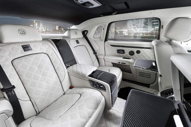 Впрочем, статус исходной модели не сказался на программе тюнинга. Специалисты немецкой компании разработали для Ghost фирменный аэродинамический обвес из углепластика, который может быть оформлен не только в матовом или глянцевом варианте, но и окрашен либо в цвет кузова, либо в контрастный оттенок. Заявлено повышение прижимной силы с новыми деталями. Седан получил 22-дюймовые колеса Brabus Monoblock M Platinum Edition, дизайн которых оптимизирует вентиляцию и охлаждение тормозов.