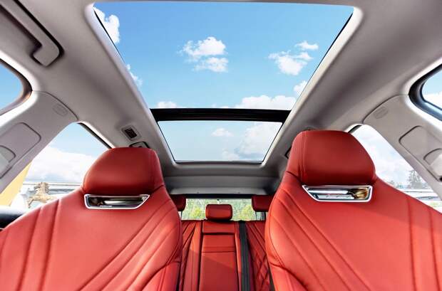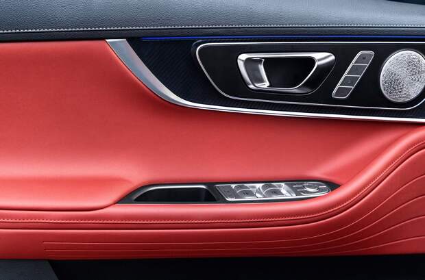 Внутри нового Chery Tiggo 7 Plus повторяет показанный на автосалоне в Чэнду гибрид Tiggo 7 Plus New Energy. Здесь те же самые кресла с интегрированным подголовниками, подрезанный снизу руль, изогнутый цифровой кластер диаметром 24,6 дюйма и «хрустальный» селектор трансмиссии с изображением головы тигра. Выполнено всё это в контрастной цветовой гамме, сочетающей черный с красным Magma Red.