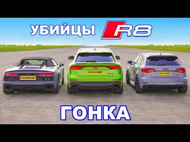 #carwow #audi Понравилось видео? Подписывайтесь на @carwow Русская версия и включайте уведомления, чтобы не пропускать новые выпуски! Что будет если выставить Audi R8 против Audi RS3 и Audi RSQ8? Кажется, лёгкая победа R8, так? Ну, далеко не факт! Видите ли, эти RS3 и RSQ8 были подвергнуты тюнингу, и мы собираемся проверить, достаточно ли его, чтобы одолеть R8! Давайте сравним характеристики. Начнём с RS3: он оснащён всё тем же 2,5-литровым 5-цилиндровым бензиновым двигателем, однако, после тюнинга, он выдаёт 550 л.с. и 730 Нм момента! Теперь о RSQ8: он оснащён 4-литровым V8 с двойным турбонаддувом мощностью 710 л.с.! Точный крутящий момент неизвестен, полагаем, что в районе 900 Нм. Так что, смогут ли эти авто обогнать the R8 V10 Performance Spyder? Ведь его 5,2-литровый атмосферный V10 просто пушка, которая охотно выдаёт 620 л.с. и 580 Нм момента! Есть лишь один способ выяснить - ПОГНАЛИ! Ещё один крутой заезд: Carwow Shorts - https://www.youtube.com/channel/UChqjw1OxDLUVvoP3r7BXteg TikTok - https://vm.tiktok.com/Vr2AS9/ Instagram - http://www.instagram.com/carwow Instagram Мэта - http://www.instagram.com/matwatsoncars Facebook - http://www.facebook.com/carwowuk/ Twitter - http://www.twitter.com/carwowuk e-mail - reviewmycar@carwow.co.uk Канал Мэта - https://www.youtube.com/channel/UCulu1KUYJ_2OBDouc_d-cUA Оригинальное видео от 24.08.2022 Ссылка: Мерч: https://teespring.com/en-GB/stores/carwow-index